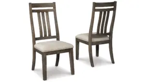 Natural wood-look finish: Light, neutral tones enhance the tabletop’s rustic charm