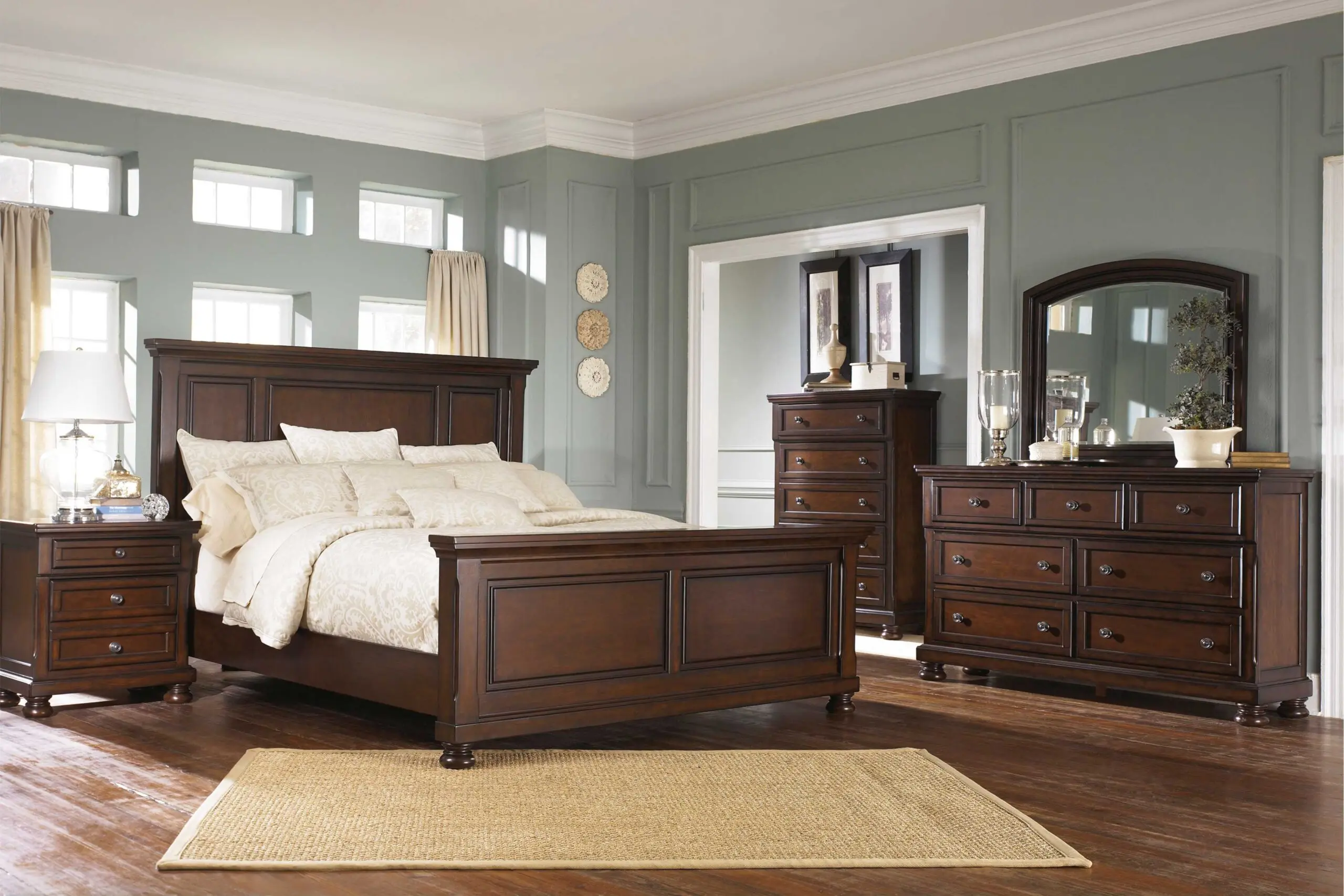 The Porter bedroom collection exudes refined craftsmanship and classic charm. Distinguished by its elegant lines, inlaid paneling, vintage-style hardware, and stately moulding, this set strikes a perfect balance between sophistication and simplicity. Designed for those who appreciate enduring style, the collection features meticulous construction—like dovetail joinery and felt-lined drawers—for beauty that lasts through the years.